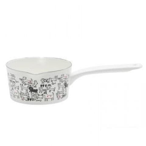 豊琺瑯 Plune.(プルーン) ホーロー両口ミルクパン(ガス火・IH電磁調理器対応) 15cm WT・ホワイト モノトーンドッグ YJM-105