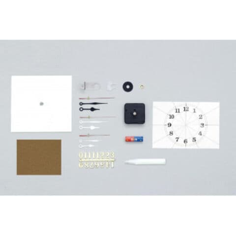 | セット内容 | 白彫板(穴あき加工済)、クォーツ時計B(電池付)、プラ製数字、サンドペーパー、工作接着剤(10g) |