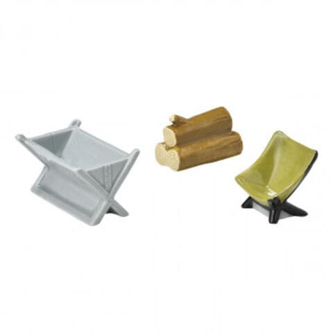 サイズ焚火台:W5.2×L3.5×H3cm、チェア:W3.3×L2.5×H3cm、丸太:W4×L2×H2.5cm