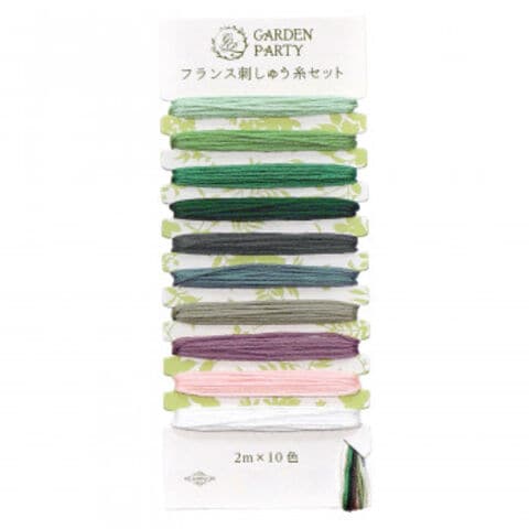 | フランス刺しゅうでボタニカル柄の小さいモチーフを刺すのにちょうど良い、長さ2mの10色セットです。 |