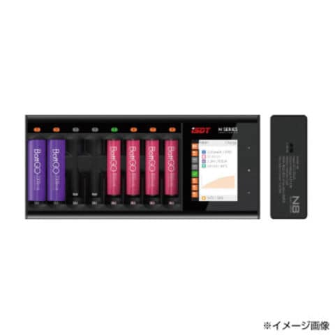 | カラーLCD&タッチ操作パネル採用!最大8本同時に、単3/単4を混在で充放電可能!バッテリーコンディションをグラフィカルに表示!USB給電を採用。電源に悩む必要なく使用できます。※8本独立しての制御はできません。 ※全スロット同調動作。スロットごとの独立操作はできません。 |