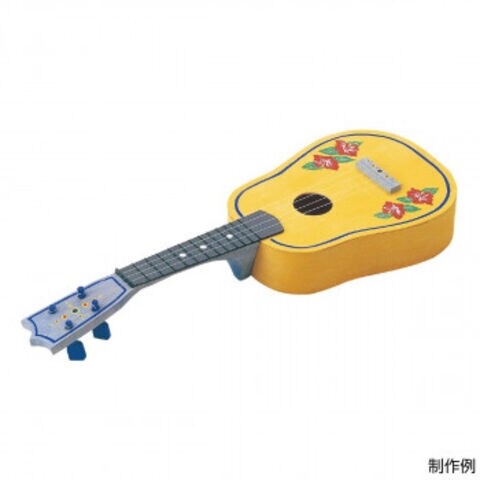 | セット内容 | 表・裏用合板(打抜加工)×2 案内用ベニヤ(カット済)×4 側面板×1 弦駒×1 弦巻き×4 ネック×1 弦×4 指板×1 あて木×2 うめ木×1 セル棒×1 木ネジ×1 型紙×1 ビーズ×6 輪ゴム×4 紙やすり×2 |