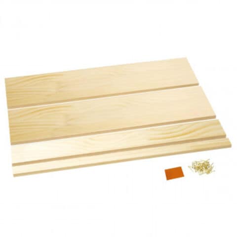 | セット内容 | 板材(ラジアタパイン集成材)(700×150×15mm)×2、板材(ラジアタパイン集成材)(700×60×15mm)×1、板材(ラジアタパイン集成材)(700×30×15mm)×1、真鍮メッキ釘(N-32)×40、説明書(作例図面12種類付)×1、不織布保管袋×1、サンドペーパー×1 |
