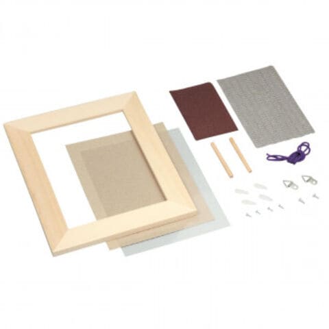 セット内容木部・透明板・紫ひも・吊り金具・木ネジ・ノンスリップシート×各1、額スタンド用棒×2