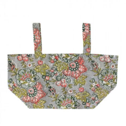 コンビニに持っていくのにちょうどいいサイズのエコバッグ。インドの伝統的なハンドブロックプリントは、柄のかすれ具合やズレなど、手作業ならではの味わいがあたたかみを感じます。