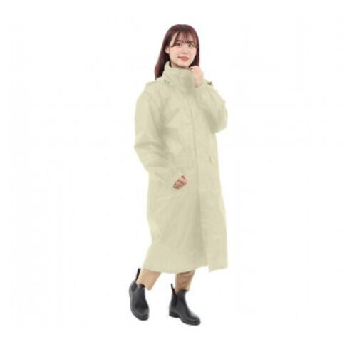 | 防水生地、シームテープ、生地裏総メッシュ、反射テープ、膝下部分の大型マチで膝元も濡れにくい仕様。フード口・袖口調節機能、収納フード、ポケット付き。通気口(前身頃・後身頃)で蒸れを軽減します。大型収納袋も付属します。 |