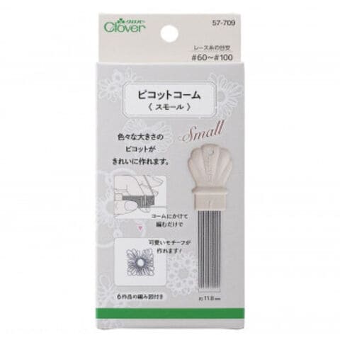 | タティングレースのピコットの大きさを揃えて作るためのツールです。コームに糸をかけて編むだけで可愛いモチーフがきれいに作れます。6作品の編み図付き。 ピコットは10段階の高さで作れます。 (スモール)は約1.0~11.8mmの高さです。糸をかける部分がくし状なので、大きさの異なる複数のピコットを連続して作ることができます。 使用する糸の太さに合わせて、ピコットコームをお選びください。 (スモール)は細めのレース糸(60~100)です。 使い方は、左手にかかっている糸を、手前側からコームにかけます。表目を編み、1つ前の目の横まで寄せてから、裏目を編みます。 ※糸の太さは、メーカーによって異なります。 ※糸は付属しておりません。 ※適したレース糸よりも太い糸で使用すると、本体が破損・変形する恐れがありますので、ご注意ください。 |