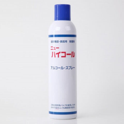| 食品用機械・調理機器・食器等に使用できるアルコール除菌剤。原料及び容器、バルブ、噴射口等材料の品質管理並びに製品品質保証体制を強化した環境下で製造されたエアゾール式アルコールスプレー。アルコール濃度70%(W/W)。スプレーするだけで調理機器・食品等の雑菌の繁殖を抑る。倒立状態でも使用可能。液化石油ガスを使用していますので、噴射力が強く洗浄力が大。噴射後拭き取り不要。 |