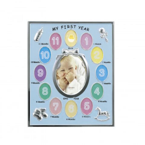 12ヶ月ベビーフレーム。重厚感のあるスチール製。1ヶ月ごとに生後1年間の成長を飾ることができます。