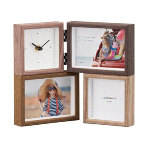 | 時計と写真立てがセットに♪大切な思い出はいつもあなたと共に。本物の木材を貼った上質感のある仕上がり。 【対応写真サイズについて】 ※現像所、メーカーによって多少の違いがあります。またフィルムのサイズ(35mm、6×6判等)や国によっても違います。 ※ポストカード判の寸法はメーカーや国によって異なります。 【バックボードの外し方】 枠内側にはめ込んだストッパーを回転させバックボードを外してください。 |