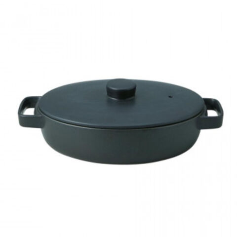 | モダンなフォルムに一目ぼれしても、後悔はしないはず。大きめのスクエアハンドルは、持ちやすく、扱いやすさのポイントにもなっています。土鍋料理が楽しみになるデザインです。 |
