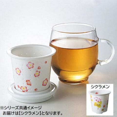 | ガラスのマグカップとセラミックの茶こし。ガラスのマグカップに陶磁器の茶漉しと蓋をセットしました。茶漉しに茶葉をいれお湯を注いで蓋をしてしばし待ち、いい色にお茶が出たら茶漉しをはずして、そのまま飲めます。ガラスごしにお茶の濃さが見えるから、少しの量でも濃くなりすぎる事はありません。ガラスのマグカップは耐熱ガラス。ギフトにも最適。ガラスのマグカップの中に、かわいい柄が浮かびます。 セラミックの茶こしは体に優しく、お茶の味を引き立てます。 【やきものの茶こし】 特殊な技術で穴を開けた磁器製の茶こしです。 1300度の高温焼成をしています。お茶そのものの味と香りを楽しめます。 【機能性に優れたおしゃれマグ】 おしゃれマグの茶こしは底部が三つ脚になっており、マグカップに茶こしの脚を引っかけ、熱いお茶の湯切りをすることができます。 また、蓋は裏返すと、茶こし受けとしてもご使用いただけます。 |