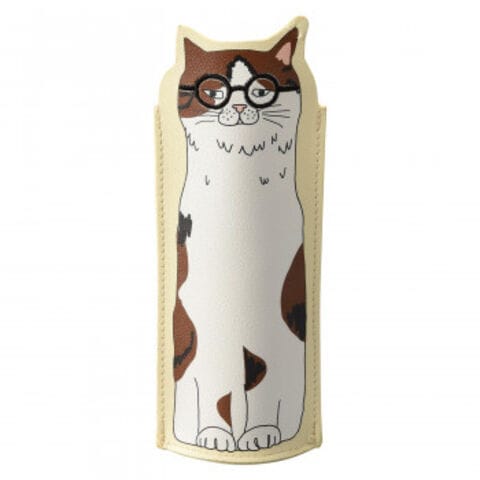 カバンの中でも邪魔にならない、スリムなケースです。合皮なので程良い硬さ。立てて置いた姿にニヤリ。誰かに似ているようなかわいい手書き風プリントです。メガネ部分は刺繍です♪