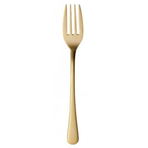 時にはゴールドのカトラリーで大人のコーディネートはいかがでしょうか。マットな仕上がりだから上品にまとまります。欧米ではデザート用フォークですが、日本ではパスタやハンバーグなどを食べる際に使われるサイズです。