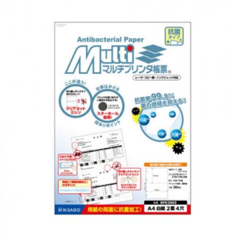 ヒサゴ マルチプリンタ帳票 抗菌紙 A4 白紙 2面 4穴 BPK2003