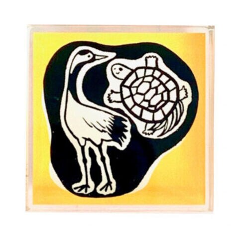 消しゴムはんこ作家とみこはんさんのめでたい福招きモチーフのアクリルスタンプです。「鶴は千年、亀は万年」と言われるように、長寿の鶴亀モチーフです。