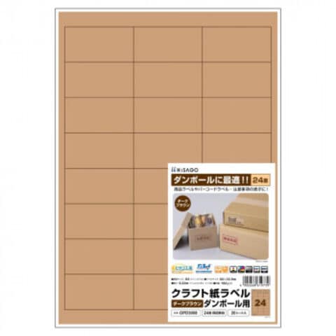 ヒサゴ クラフト紙ラベル ダークブラウン ダンボール用 A4 24面 四辺余白 20シート OPD3008