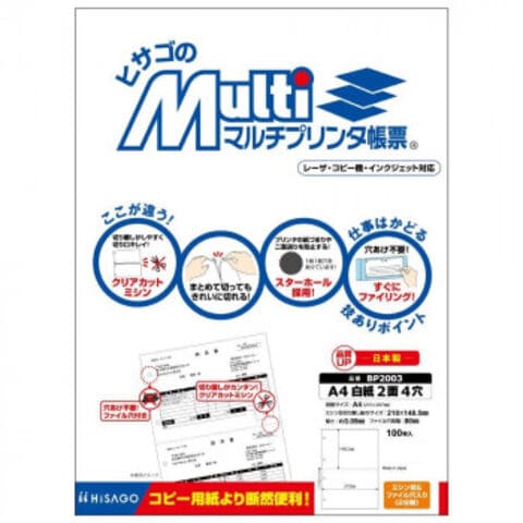 ヒサゴ マルチプリンタ帳票 A4 白紙 2面 4穴 100枚 BP2003
