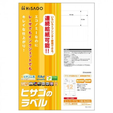 ヒサゴ エコノミーラベル 12面 四辺余白 100シート ELM008
