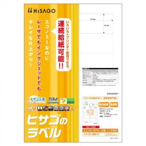 ヒサゴ エコノミーラベル 12面 インチ改行 100シート ELM017