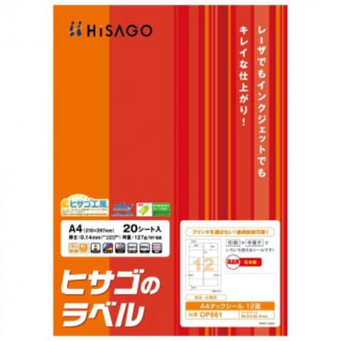 ヒサゴ A4タックシール 12面 角丸 20シート OP861
