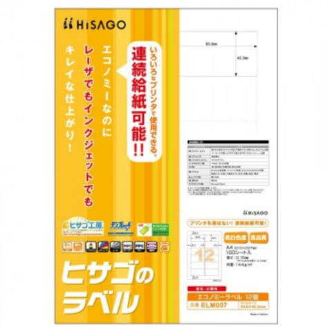 ヒサゴ エコノミーラベル 12面 角丸 100シート ELM007のレビュー