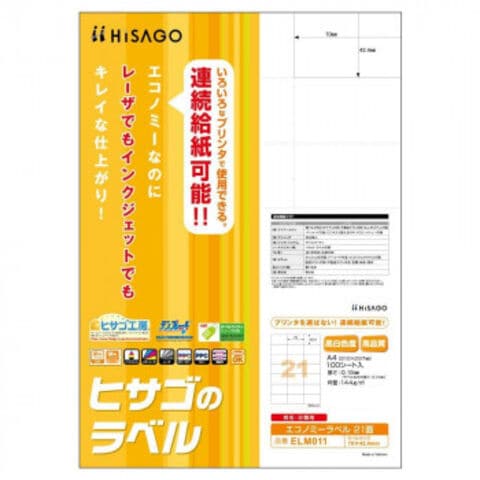 ヒサゴ エコノミーラベル 21面 100シート ELM011
