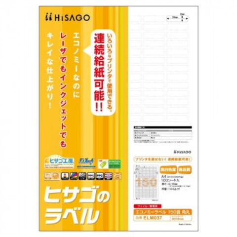 ヒサゴ エコノミーラベル 150面 角丸 100シート ELM037