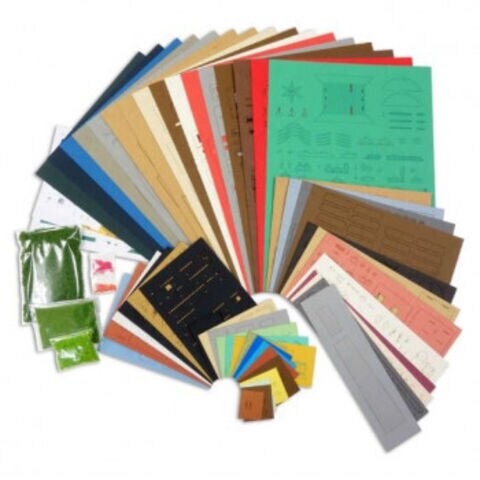 | セット内容 | レーザーシートA~Z、a~w(49枚)、印刷シート(3枚)、プラ板(1枚)、地面(スポンジ、パウダー、色砂)、組立て説明書 |