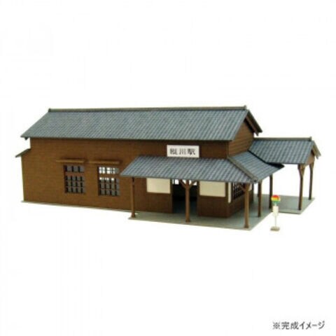 | ローカル線が似合う木造駅舎のキットです。板壁と漆喰壁が良い雰囲気を出しています。正面玄関から側面に回りこむ屋根。ホームは駅舎より少し長くなっています。おまけでバス停が付いています。 ※完成品ではございません。 |
