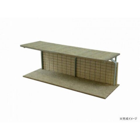 石綿スレートの屋根とブロック塀でできた駐輪所のキットです。みにちゅあーとキットは、細部まで精密にレーザーカットされたカラー硬質紙を貼り重ねて組み立てればOK。色付きの厚紙なので塗装することもなく精巧な模型が完成します。完成した模型は、とても紙とは思えない、しっかりとした質感、強度を持っています。