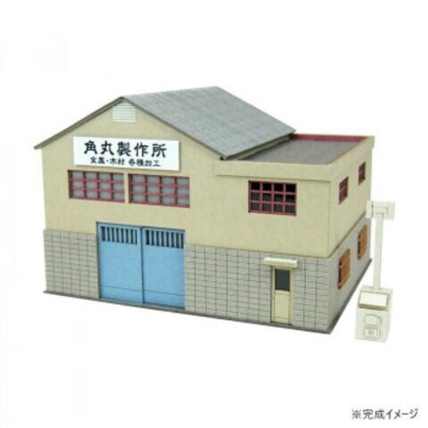 | 街なかにありそうな町工場のキットです。作業場へ続く大きな引き戸。1階の窓格子も印象的です。 ※完成品ではございません。 |
