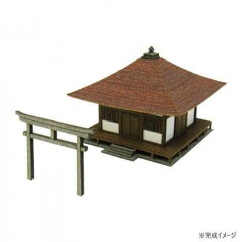 | 小さなお堂のキットです。寄せ棟、檜皮葺きのお堂。鳥居も付いています。 ※みにちゅあーとキットはキット商品です。完成品ではございません。 |
