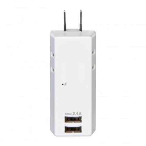 | 仕様 | 使用温度範囲:-10度~40度 屋内専用 【USBポート】 定格:DC5V、最大:3.4A(2ポート合計) コネクタ形状:USBAタイプ(メス) ポート数:2ポート 【AC差込口】 定格:AC100V、14A 合計:1400Wまで 口数:2個口 |
