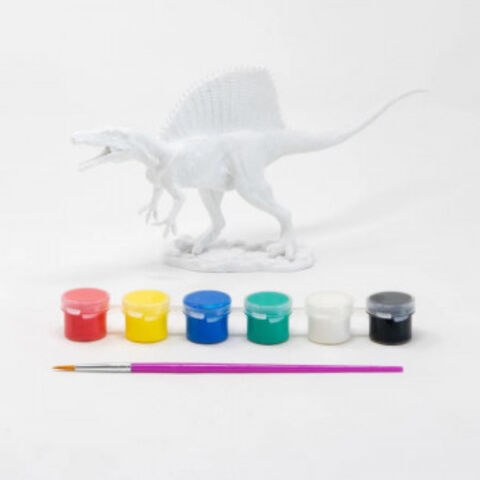 肉食恐竜スピノサウルスのPVC製フィギュアです。付属の6色の絵の具と筆を使って自分だけのオリジナル恐竜フィギュアをつくることができる商品です。恐竜時代に思いを馳せながら、あなたの手で自分だけのダイナソーワールドをつくろう。