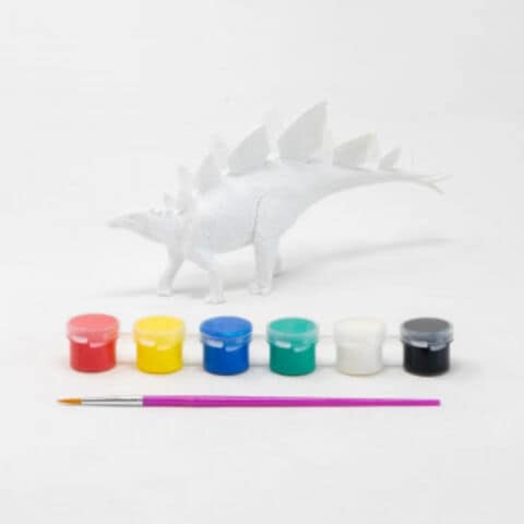 背中に並んだ大きな骨板が特徴のステゴサウルスのPVC製フィギュアです。付属の6色の絵の具と筆を使って自分だけのオリジナル恐竜フィギュアをつくることができる商品です。恐竜時代に思いを馳せながら、あなたの手で自分だけのダイナソーワールドをつくろう。