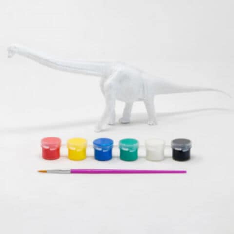 | 大型恐竜の代名詞ブラキオサウルスのPVC製フィギュアです。付属の6色の絵の具と筆を使って自分だけのオリジナル恐竜フィギュアをつくることができる商品です。恐竜時代に思いを馳せながら、あなたの手で自分だけのダイナソーワールドをつくろう。 【注意事項】 ※誤飲やケガの恐れがありますので、対象年齢未満の小さなお子様には与えないでください。 ※フィギュアは、本物の生物をリアルに再現する為、一部とがった所があります。取扱いには十分に注意してください。 ※鑑賞を目的とした商品ですので、ぶつけたり振り回すなど乱暴な遊びをしないでください。 ※火気や暖房器具の近くで使用・保管しないでください。 ※絵の具が服やパレットに付着しますと色が落ちませんので、汚れても差し支えのない服装、紙パレットのご使用をおすすめします。 ※使用後は絵の具ボトルの蓋をしっかりと閉め、筆は水洗いをしてください。 ※絵の具が、目や口に入らないようにしてください。手に絵の具が付着した際は、すぐに洗い流してください。 ※ペイント後のフィギュアは、しっかりと乾燥させてください。乾燥後も強くこすると、色移りや塗装のはがれが生じますので、ご注意ください |