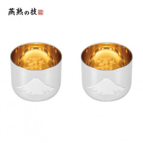よこやま 燕熟の技 感温ぐい呑み 赤富士 内面金メッキ(桜柄入り) 2PC EJG-800