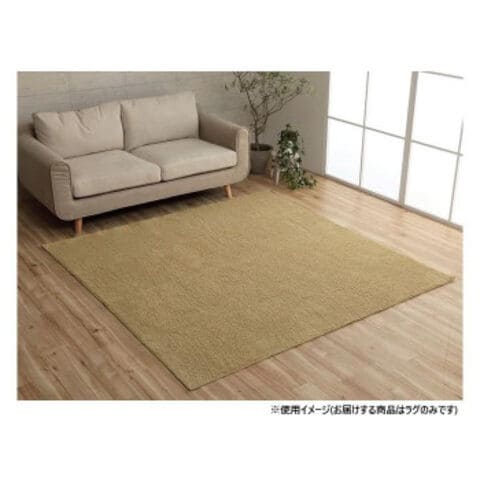 ミックスパイル ラグ 約2畳 約185×185cm ホットカーペット対応 ベージュ 3985349