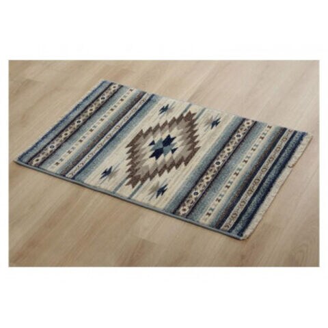 ウィルトン織 玄関マット キリム柄 約60×90cm ブルー 2052969