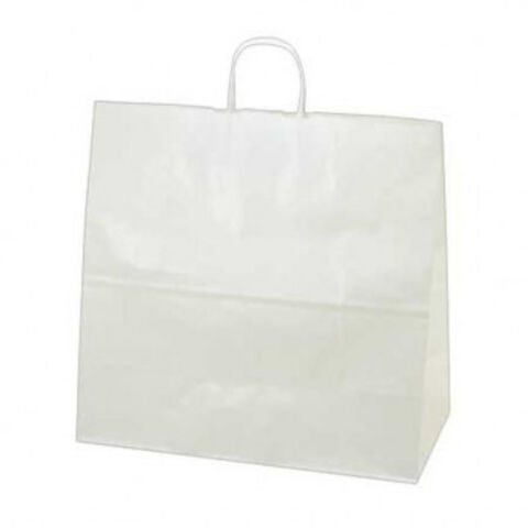 | 衣料・雑貨屋など幅広く利用される、最もベーシックな無地のシンプルな手提げバッグです。あらゆるシーンに利用できる定番の白無地。表面に艶のある片艶晒クラフト素材。コートやジャケットなどの洋服を入れるのにちょうどいいサイズです。 |