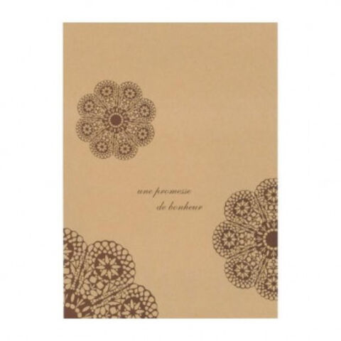 | 小物や文具などを入れるのに適した最もベーシックな平袋です。人気のレース柄をナチュラルな風合いの未晒クラフト紙に印刷。ガーリーで落ち着いたデザインなので幅広い層に好まれます。une・promesse・de・bonheurは幸せな約束という意味です。 |
