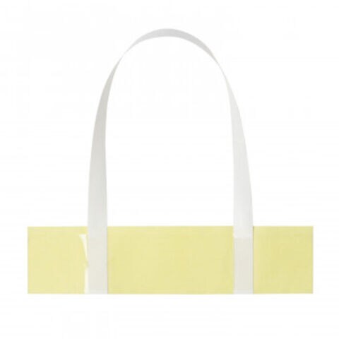 持ち手のない荷物に貼り付けるだけでバッグのように持ち運べます。商品外装に貼るフィルム部分が透明なので商品外装の印刷が隠れません。荷物に貼るだけなのでレジ対応が早くお客様をお待たせしません。また、持ち手のない紙袋に取り付けてオリジナルバッグにすることもできます。