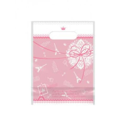 | 底にマチのあるスタンディングバッグです。前面に透明なレースデザインを、背面は透けにくいカラー印刷を施しています。持ち手つきの可愛いバッグです。 ※柄は両面に印刷されています。 |