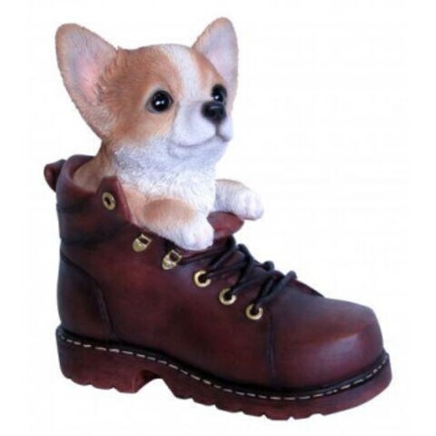 | 本物そっくりの犬の置物です。靴から覗いている姿が可愛く、癒されます。 |