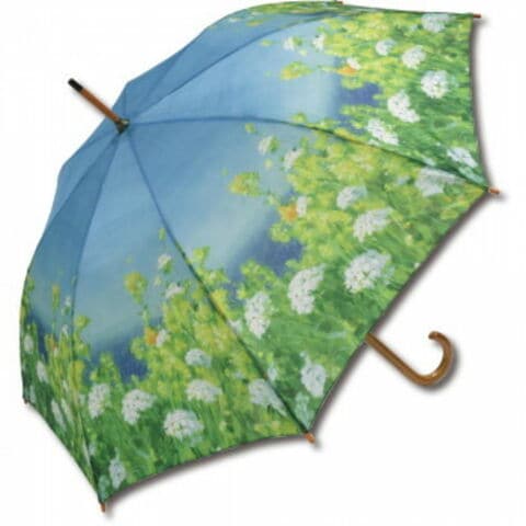 | ナチュラルな雰囲気を残す木製ハンドルの名画ジャンプ傘。色鮮やかな名画が雨の日の気分を上げてくれます。 |