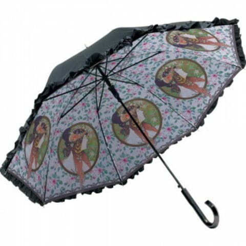 ユーパワー 名画フリルジャンプ傘 ミュシャ「ブルネット」 AU-02612