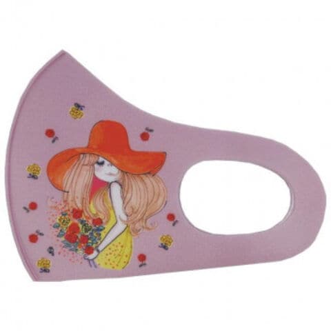 亜土ちゃんの可愛いイラストがデザインされたマスク。UVカットも嬉しいポイント。