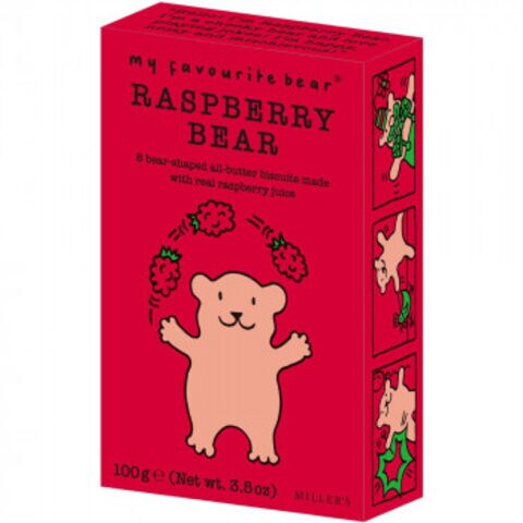 | ラズベリージュースの甘酸っぱさと、米粉を使用したさっくり食感。職人の手から生まれるイギリス生まれのベアー型ビスケット。8枚入り。 |