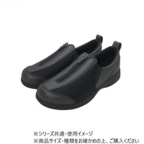 脱ぎ履きしやすいセンターファスナー式です。履き口サイドにゴム付きで、フィット感良く履けます。ストレッチ素材使用でやわらかな履き心地。外反母趾の方にもおすすめになっております。クッション性に優れたふかふかインソールを装備。軽く屈曲性に優れた靴底。